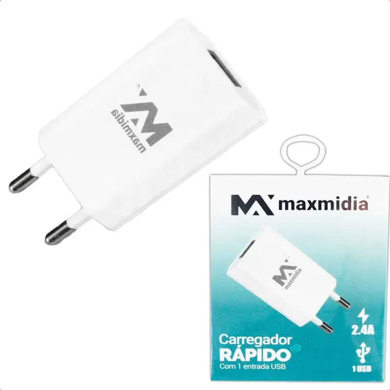 CARREGADOR DE CELULAR TOMADA USB MAXMIDIA - 800019070985