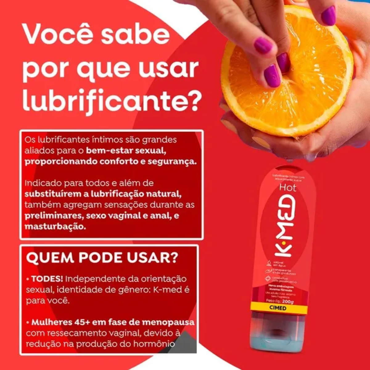 Gel Lubrificante íntimo Hot K-med 200g – Cimed O produto é indicado para pessoas que querem deixar a relação sexual mais confortável. É ideal para mulheres com vagina segura ou baixa lubrificação. Imagens Meramente Ilustrativas. Todas as Informações Divulgadas são de Responsabilidade Exclusiva do Fabricante/fornecedor.