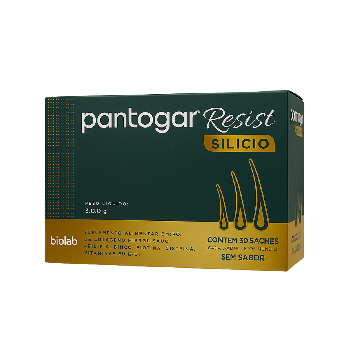 O Pantogar Resist Silício é um suplemento alimentar desenvolvido para fortalecer e promover a saúde dos cabelos, pele e unhas. Sua fórmula contém uma combinação de nutrientes essenciais, incluindo silício orgânico, biotina, vitamina C, zinco e ácido pantotênico, que contribuem para a manutenção da saúde e beleza dessas estruturas.